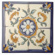 summery sicilian ceramic tile,italian hand painted pattern,mediterranean orange portuguese design,gold cream blue and white,summer daisy flowers floral,minimalist minimal simple portugal,authentic classic traditional painting,vintage retro antique rustic,folk art spanish mexican talavera,golden mustard yellow flower