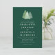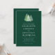 Simple Woodland Pine Evergreen Forest QR Code Wedding Invitation Watercolor Fir Trees on Emerald Green Background