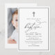 simple black and white, black frame custom photo baptism invite. The text and colours can be edited.