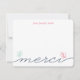 A sweet little thank you note with the French word for “thank you” in a simple handwriting typeface. Little butterflies hover over around the word. Personalise with your name at the top in a coordinating pink. The back features a multi coloured, coordinating Breton stripe pattern. These lovely little thank you notes coordinate with the French bebe baby shower invitation.