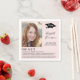 Simple "fun facts" graduation party pink napkins to celebrate your graduate's journey. Personalise with her photo, add her name in a trendy script and her school and class year (on a black graduation cap) in simple modern typography and list some fun facts about her.