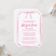 Celebrate this special milestone with our Elegant Pink Bow Bat Mitzvah Invitation. Featuring a chic pink bow design that frames the details beautifully, this invitation is perfect for a sophisticated and modern Bat Mitzvah celebration. The soft pink and white colour palette adds a timeless charm, making it ideal for your daughter’s big day. Customise with your event details to create a unique and memorable invitation that sets the tone for the celebration. Perfect for parents looking for a modern yet classic touch.