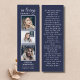 Personalise this Modern Sympathy Funeral Prayer Bookmark. Design features a clean white script typography, unique 3 photo collage on a classic navy blue background. Easy to customise photos and text.