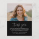 A Simple Funeral Memorial photo thank you card featuring handwritten script thank you and minimal typography. Click the edit button to easily customise this thank you template with your own details and photograph of your loved one.