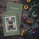 A simple green memorial thank you flat note card features "In Loving Memory" with your loved one's photo, name and birth-death dates on the front and your thank you message on the back. MATCHING items in our collection.