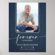 A simple printed blue denim pattern memorial 18" x 24" poster, or select your size, features "Forever in our Hearts" with your loved one's photo, name, birth-death dates. Order PRINTED and/or INSTANT DOWNLOAD to have printed yourself. MATCHING items in our collection.