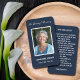 A simple navy blue and white memorial card features "In Loving Memory" with your loved one's photo, name and birth-death dates, and a poem or prayer on the back. Beautiful for a treasured keepsake, funeral services, and celebration of life memorial.