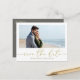 An elegant simple save-the-date wedding card with a modern QR Code and modern elegant photo picture couple, a QR code website online URL, a web address wedding site, a stylish trendy typography font text, a golden neutral budget friendly postcard, a minimal save our date cards, a creative stylish calligraphy script, a simple modern border photo cards, a casual modern save the date, a modern scannable scan wedding code