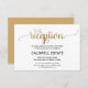 This simple gold calligraphy reception enclosure card is perfect for a chic wedding. The classic romantic design features faux gold foil typography and a lovely golden heart. Personalise this detail enclosure card with your reception information and include your wedding website address too!