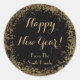 Simple Gold Confetti and Black Happy New Year Classic Round Sticker