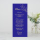 Unique simple wedding menu featuring romantic and elegant gold flowers on royal blue background