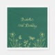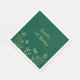 Unique simple wedding paper napkin featuring romantic and elegant gold flowers and butterflies on emerald green background