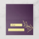 Unique simple wedding place card featuring romantic and elegant gold flowers on purple background