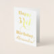 This simple and elegant gold foil birthday card design features a message like "Happy 3rd Birthday, Alexandra!" on the front. The name ("Alexandra") can be changed to personalise the card. The inside features a customisable message like "May your 3rd birthday be a happy and joyful one!". It could be given to somebody who is celebrating their third birthday. [~Z0000005]