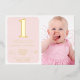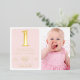 A modern birthday party invitation for your little girl featuring portrait of your little girl along side a blush pink rounded oblong on a white background, with the age of your daughter and event details in real gold foil.