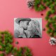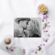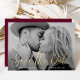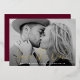 Simple save the date card featuring your full-bleed horizontal photo with "Save the Date" displayed in a gold foil script. Personalise the minimalist save the date card with your name, wedding date, and wedding location. The card reverses to a solid burgundy background.