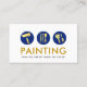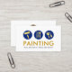 An all white cover features gold painting tools and brushes placed in blue circles. Just below this lies the oversize business name "PAINTING" and the contact details.