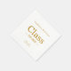 A simple and elegant graduation napkin. Celebrate the graduate's accomplishment in style with this stylish graduation paper napkin. Design features "Class of 2023" in gold font on a clean white background. Personalise this product by adding the name and school name. Easy to customise. Congratulations!