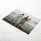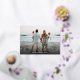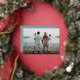 Elegant Christmas photo card features a single horizontal or landscape-oriented photo with "Peace on Earth" overlaid in gold foil calligraphy script lettering. Personalize with your family name or individual names and the year beneath in modern white lettering. A simple and chic choice for your holiday 2022 greetings.