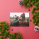 Elegant Christmas photo card features a single horizontal or landscape-oriented photo with "Holiday Cheer" overlaid in gold foil calligraphy script lettering. Personalize with your family name or individual names and the year beneath in modern white lettering. A simple and chic choice for your holiday 2022 greetings.