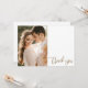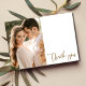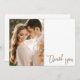 Thank your wedding guests for their attendance to your celebration and wedding gifts with these simple gold script with photo wedding thank you cards.