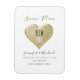 Simple, minimalist, black and white change the date wedding postponed invitation magnet, with elegant gold foil heart, symbol of strong, endless love, warmth, richness and faith.