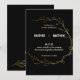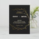 Here's a gorgeous choice for the invitations to your gold and black colour-themed wedding. This design features a chic faux gold foil wreath encircling the names of the bride and groom followed by their easily personalised wedding details. All on an elegant black background. The back of the card features faux gold foliage on black background. The back of the card is available for the first letters of the names weds would.