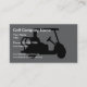 Simple business card template for a golf industry business designed with graphic image of a golf cart printed behind your information used for a golf course, golf lessons, golf cart sales, service, and repairs.