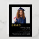 Simple Grad 2025 Photo Graduation Black Gold Real Foil. Classic elegance with real foil for typography Grad, beneath your photo, and also for your "She Did It! let's Party"  with the rest of the text in white on a black background.  Easily personalise the text  and replace the sample photo with your own.