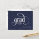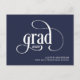Simple and stylish, this graduation announcement features grad logo text in a modern script typeface with the class year. A text template is included to personalise with your text that includes the graduates class year, name, school and additional information on the reverse side of the card. This versatile announcement card is suitable for any type of school or university graduation and any gender graduate. Shown here in navy blue background, you can customise the background colour to the colour of your choice.