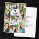 This simple, modern graduate photo collage announcement card features your favourite 9 senior portrait photographs. These clean photo block graduation announcement cards feature classy black typography of your high school or college name for the class of 2025. Customise with your graduating year below the black grad cap. It features 2 horizontal pictures, 5 vertical photos, and 2 square photographs.
