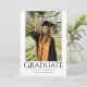 Simple Graduation Stylish Modern Grad Party Photo Announcement Party Invitation features your favourite grad photo above the elegant yet simple text "Graduate" in modern calligraphy script typography. On the reverse add your graduation party details. Available as a physical paper graduation announcement invitation and as a downloadable, shareable instant digital download. Designed by Evco Studio www.zazzle.com/store/evcostudio