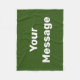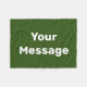 This forest green blanket has white display text. You can edit it to show your custom message.