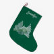 This green Christmas tree stocking with the name in a pale green matching the tree design colours is a simple stylish stocking that will be look wonderful with the Christmas decorations and be a pleasure to use year after year