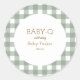 Green gingham baby shower circular sticker