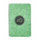 Modern simple bright green glitter texture print with black circle and customisable monogram.