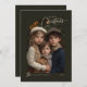 Simple Merry Christmas Script Photo Holiday Card. The dark green with the cream text provides an elegant contrast. The "Christmas" and "the" words are part of the design elements and can be re-coloured, re-positioned, and re-sized as well as the background colour. Personalise the template with your own text details. Your photo will be masked into the arch shape upon upload. Use the Edit Tool to adjust the positioning of your photo without the arch mask shape. © Kimbellished, LLC