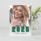 Classic Minimalist Graduation Announcement & Party Invitation. The front features a full-page photo with a white gradient at the bottom that fades seamlessly into the image. Over the gradient, "2025" appears in a bold, classic school-style font in green. Above the year is "Graduate" in a script font, which can be changed to "Class of" if preferred. Below the year, the graduate's name and school name are elegantly featured. The current design uses black and green tones for a timeless and sophisticated look, but all colours can be customised to match school colours or personal preferences.