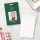 This simple green vertical employee ID card features modern typography and simple design. Personalise it with your photo, logo, name, job title, and custom text.
