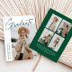 Modern graduation announcement card featuring one of the graduate's photos on the front with "Graduate" in a green handwritten script with a white background. Personalise with the graduate's name, school name, and graduation year. The minimalist graduation announcement reverses to display 4 photos in a grid-style layout with the graduate's future plans or other custom text shown below. The 5 photo graduation announcement is perfect for both high school and college graduates.
