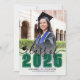 A classic yet modern take on a graduation announcement. The front features a full-page photo with a white gradient at the bottom that fades seamlessly into the image. Over the gradient, "2025" appears in a bold green, classic school-style font. Just above it, "class of" is written in elegant black script. To the left of the year is a small, customisable graduation cap icon, which you can change to match your colour scheme. Below the year, the graduate's name and school name are prominently displayed.