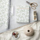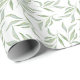 Beautiful wrapping paper with hand painted watercolor pattern featuring pale sage green leaves on a clean white background.