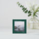 These miniature note cards are great for letting your family and friends know to save the date for your upcoming wedding. They feature a simple artsy minimalist design with a photo and small text on a deep emerald green coloured background.