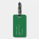 Simple elegant customisable luggage tag design with green background/white line and white bold monogram.