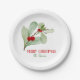 Simple greenery Christmas paper plates add to the festive atmosphere at your next Christmas party or holiday cocktail party. Elegant botanical foliage with red berries on a crisp white backdrop with a festive font that states, “Merry Christmas” appeals to the minimalist host who likes tastefully curated party supplies. Customise it with your name is easy to do. If you’re hosting a holiday party you can find more party supplies with this design theme in the Festive Watercolor Greenery and Berries Christmas Collection in The Gathering Designs store