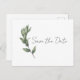 An elegant minimal calligraphy design on white with a classy text pairing and greenery. Add your names and wedding date to the back.