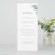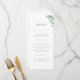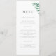 A simple greenery reception menu, providing the courses, entrees and desserts available to the guests.