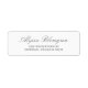 Modern return address labels featuring a simple design with your business name in an elegant grey thin script font and two lines of text for your return address in a serif font, over a white background. These minimalist return address labels are a great way to add a professional touch to your envelopes.
