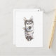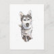 Ink and watercolor Husky design. This is a lively, expressive and illustrative drawing with line, benchmarks and splatters caused by the vigourous use of a traditional dip pen and colour Splashes, this gives the Artwork a fresh and immediate style where my 'working out' can be seen and enjoyed. It is always my aim to express an element of quirky character in the Animals I portray in order to bring a smile to your face, I hope my mission has been accomplished. The text on this can be altered for a specific card, and it can be personalised or removed