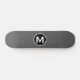 A minimalist monogram design with black and white monogram emblem with classic block typography initial on a simple grey background.